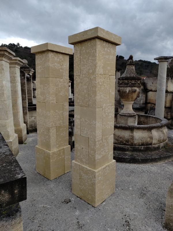 Pierre de Cabéran-coquillée avec patine. Socle 46x46 cm; fut 40x40 cm et chapiteau 50x50x10 cm